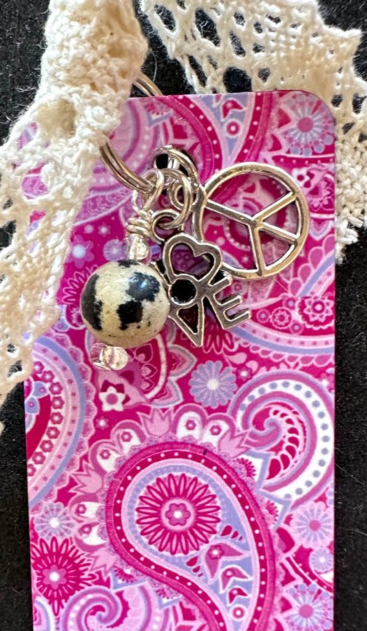 '70's Paisley! Lightweight Aluminum Bookmark With Vintage Lace, Charms and a Jasper Bead (1364-B)