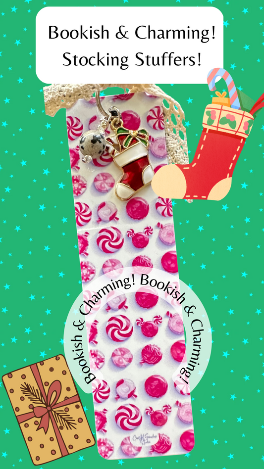 Peppermint Surprise! Lightweight Aluminum Bookmark With Vintage Lace, Charms & a Jasper Bead (1427-B)