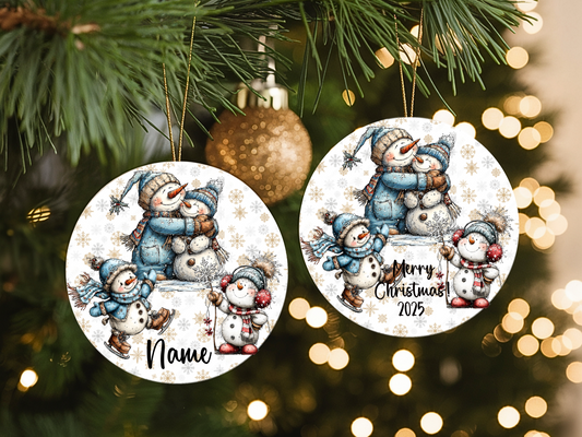 Personalized Family Snowman Ornament • Custom Name Ornament • Happy Holidays 2025 Keepsake (2025-29)