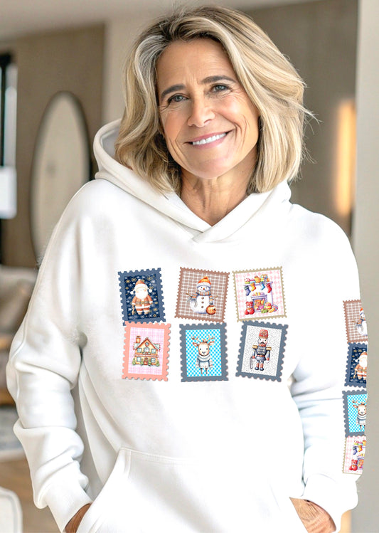 Cozy Christmas Collection Hoodie – Cute Retro Holiday Whimsical Storybook Stamps (HC-1003)
