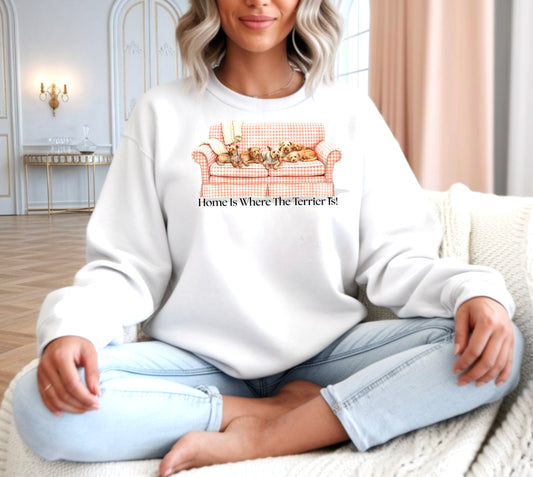 Home Is Where My Terrier Is! Crewneck Sweatshirt, Terrier Owner Gift, Animal, Cozy Casual Wear (HC-1010)