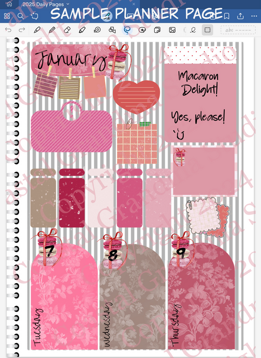 Macaron Delight! Decorative Papers & Goodies Digital Pre-Cropped Stickers For Goodnotes (4700-PG)