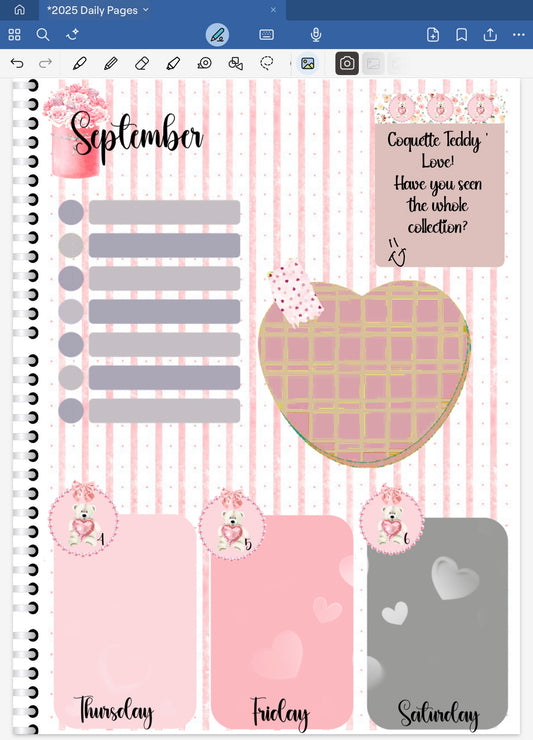 Coquette Teddy Love! Day Rounds Digital Pre-Cropped Stickers For Goodnotes (7700-DR)