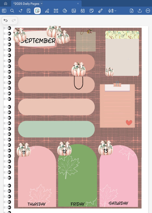 Pink Fall! Day Dashboards Digital Pre-Cropped Stickers For Goodnotes (7800-DDA)