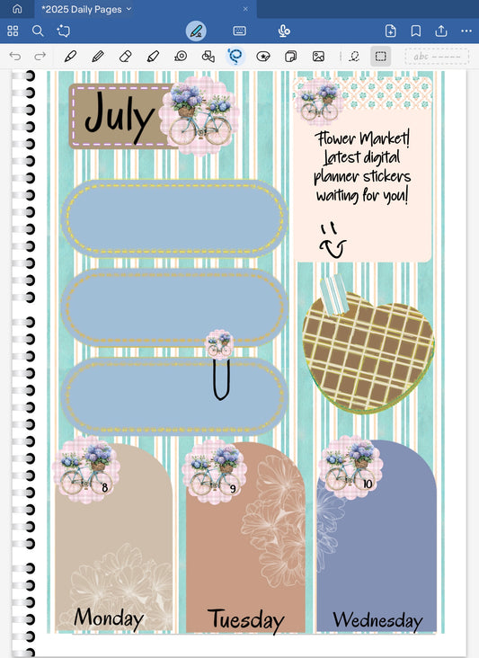 Flower Market! Day Rounds Digital Pre-Cropped Stickers For Goodnotes (7200-DR)