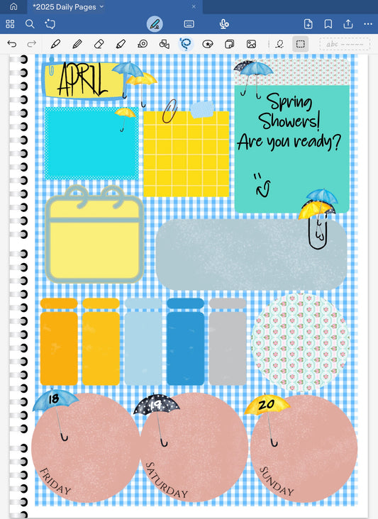 Spring Showers! Day Rounds Digital Pre-Cropped Stickers For Goodnotes (6600-DR)
