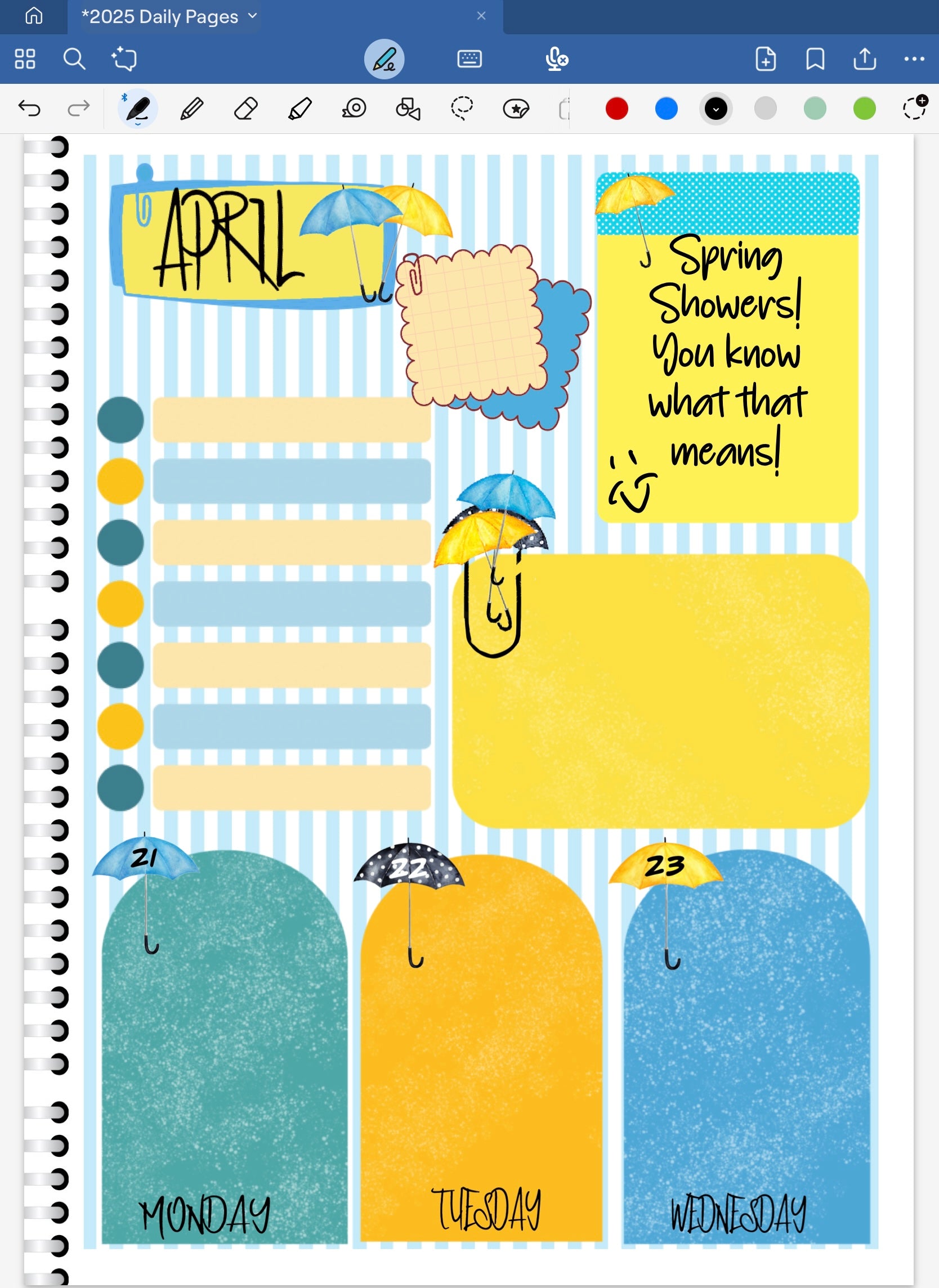 Spring Showers! Day Rounds Digital Pre-Cropped Stickers For Goodnotes (6600-DR)