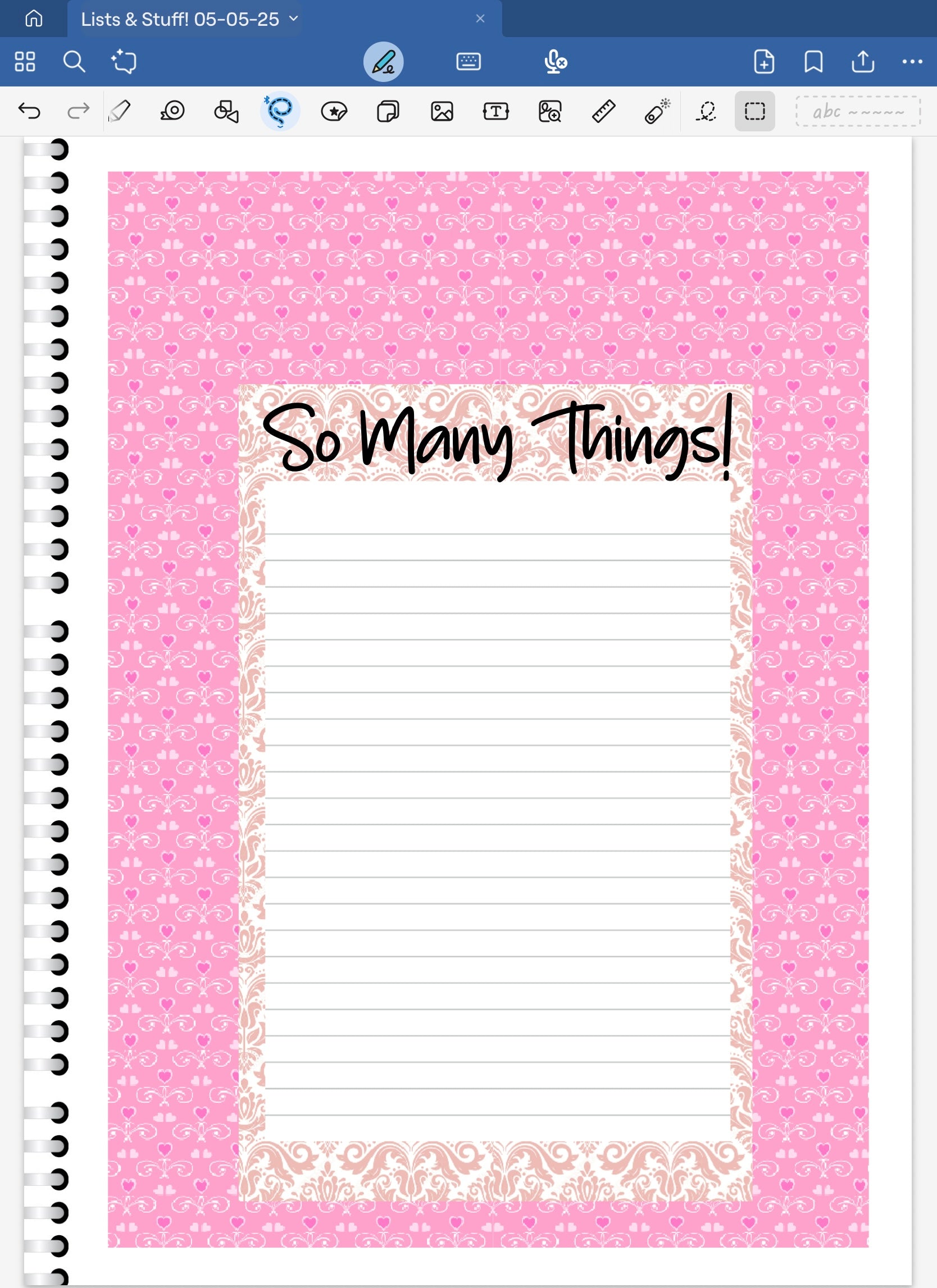 This file includes six pre-cropped lists that you can use in a variety of ways. (I added titles using the Textbox feature in the toolbar and also used a day label from the Days Of The Week bundle.) Maybe you're like me, and some days you don't feel like creating a new page so a list comes to the rescue. It's quick and easy to jot things down and check them off as you complete each one. I keep a separate notebook in Goodnotes titled Quick Lists for jotting down thoughts that come to mind! Trust me...if I don't write it down immediately...it flies out of my brain as fast as it flew in! And, as always, I've also added two file folders to help you stay a wee bit organized. You'll also find a handful of fun decorative stickers.