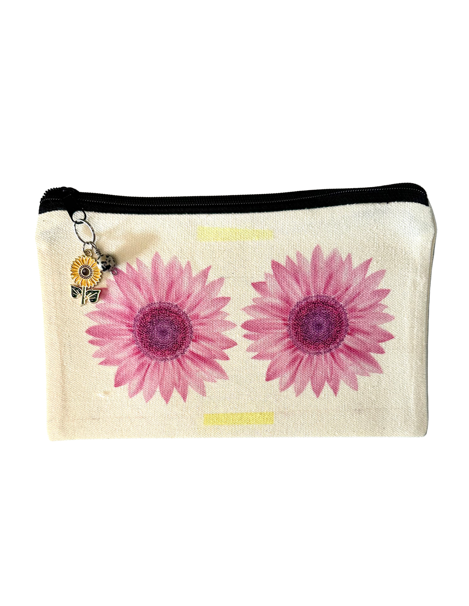 This fun cotton pouch is the perfect size to hold your pens, pencils, make-up, jewelry, stickers, bookmark collection, electronic gear for your phone/ipad...well, you get the picture, right?. I decorate each and every one in my studio, using the very same designs used on my phone cases, bookmarks, magnets, mugs, apparel, stationery, housewares, including coasters and tumblers! Each design has a charm and a Dalmation Jasper bead attached to the zipper pull The pouch measures 4.75" x 7.50" and closes with a tape zipper - not too big and not too small -- the Goldilocks of pouches!