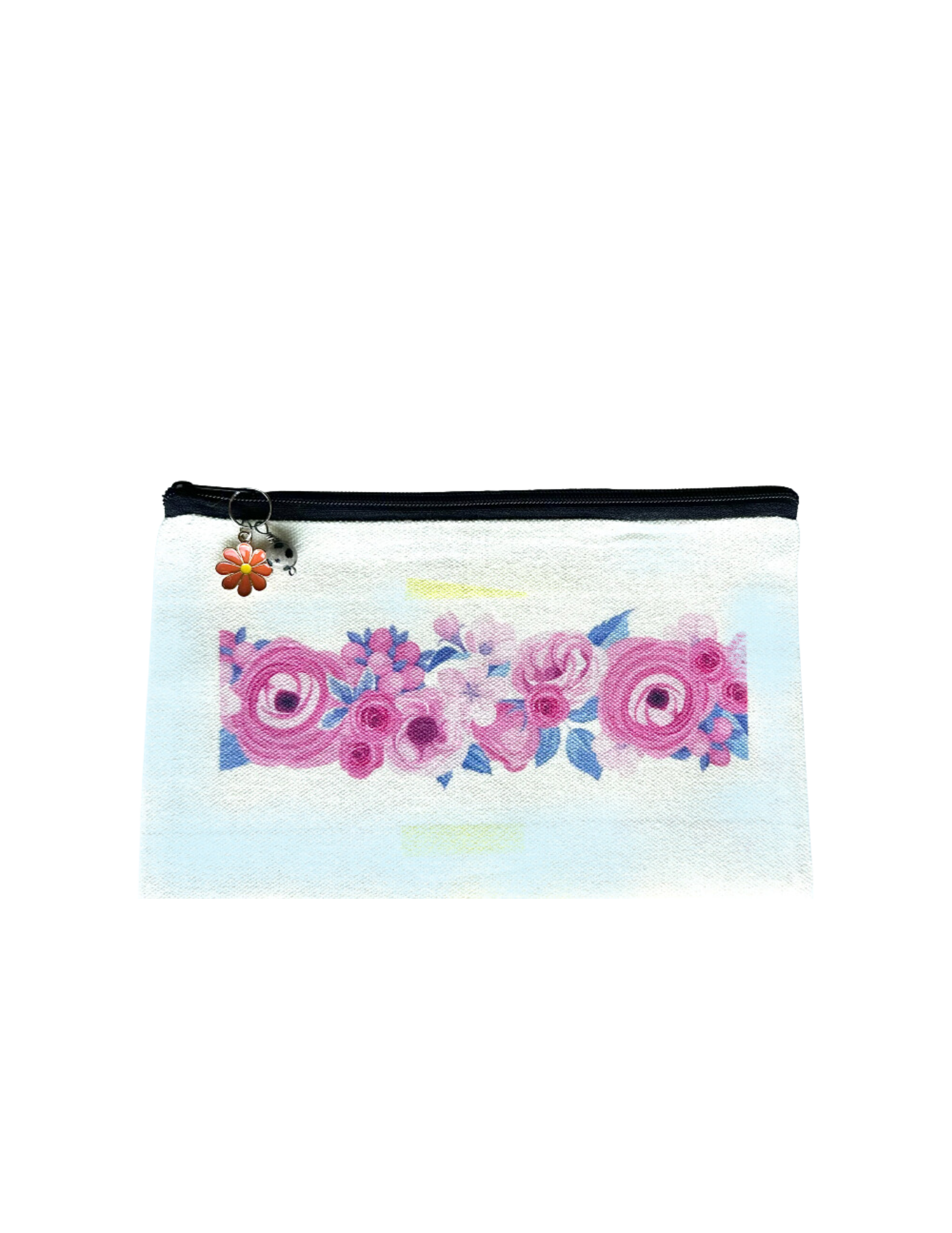 This fun cotton pouch is the perfect size to hold your pens, pencils, make-up, jewelry, stickers, bookmark collection, electronic gear for your phone/ipad...well, you get the picture, right?. I decorate each and every one in my studio, using the very same designs used on my phone cases, bookmarks, magnets, mugs, apparel, stationery, housewares, including coasters and tumblers! Each design has a charm and a Dalmation Jasper bead attached to the zipper pull The pouch measures 4.75" x 7.50" and closes with a tape zipper - not too big and not too small -- the Goldilocks of pouches!