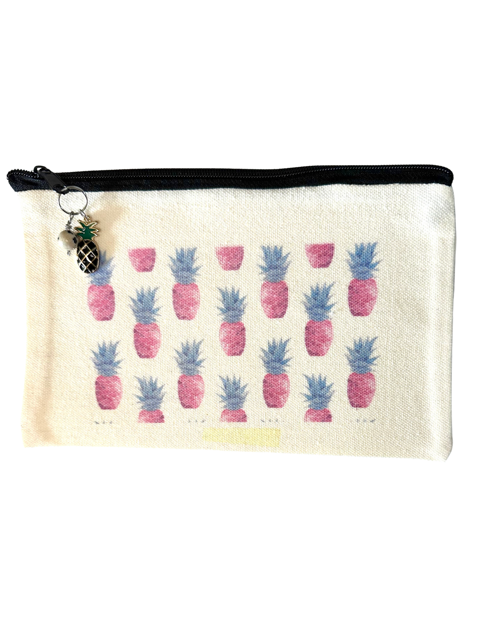This fun cotton pouch is the perfect size to hold your pens, pencils, make-up, jewelry, stickers, bookmark collection, electronic gear for your phone/ipad...well, you get the picture, right?. I decorate each and every one in my studio, using the very same designs used on my phone cases, bookmarks, magnets, mugs, apparel, stationery, housewares, including coasters and tumblers! Each design has a charm and a Dalmation Jasper bead attached to the zipper pull The pouch measures 4.75" x 7.50" and closes with a tape zipper - not too big and not too small -- the Goldilocks of pouches!
