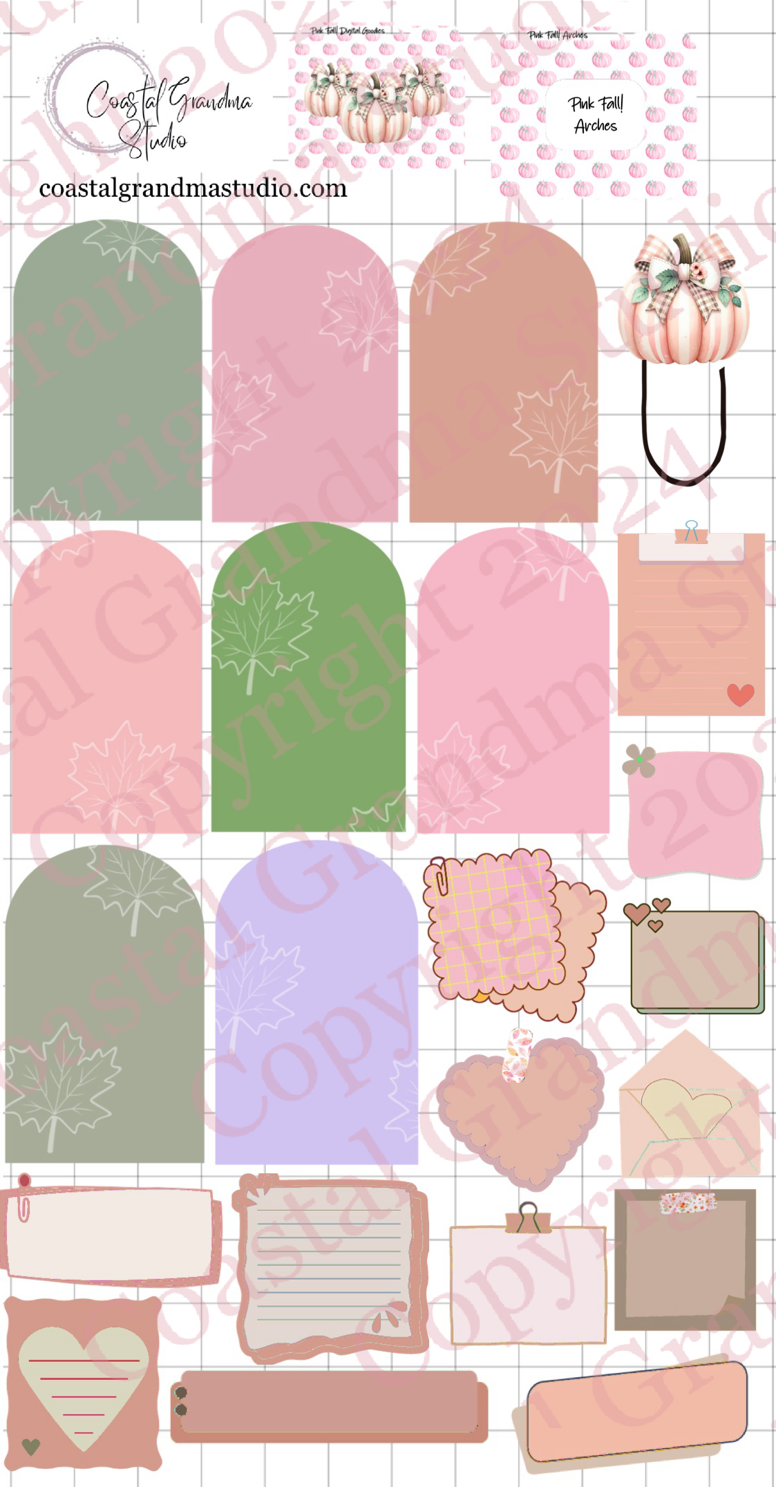 Pink Fall! Arches Digital Pre-Cropped Stickers For Goodnotes (7800-A)