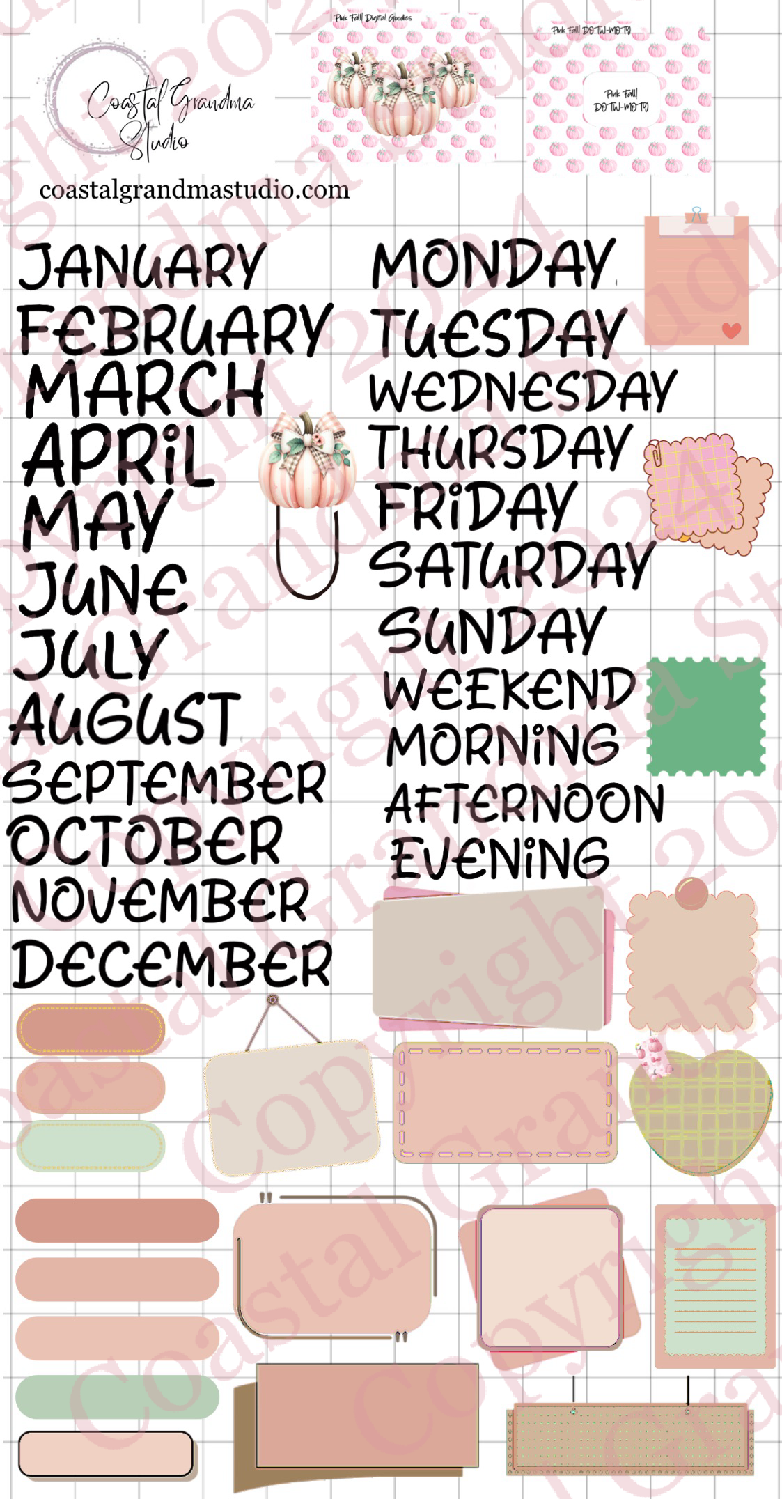 Pink Fall! Days Of The Week/Months Of The Year Digital Pre-Cropped Stickers For Goodnotes (7800-DM)