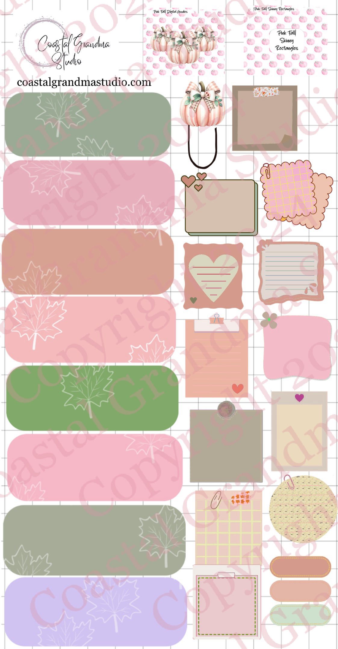 Pink Fall! Skinny Rectangles Digital Pre-Cropped Stickers For Goodnotes (7800-SR)