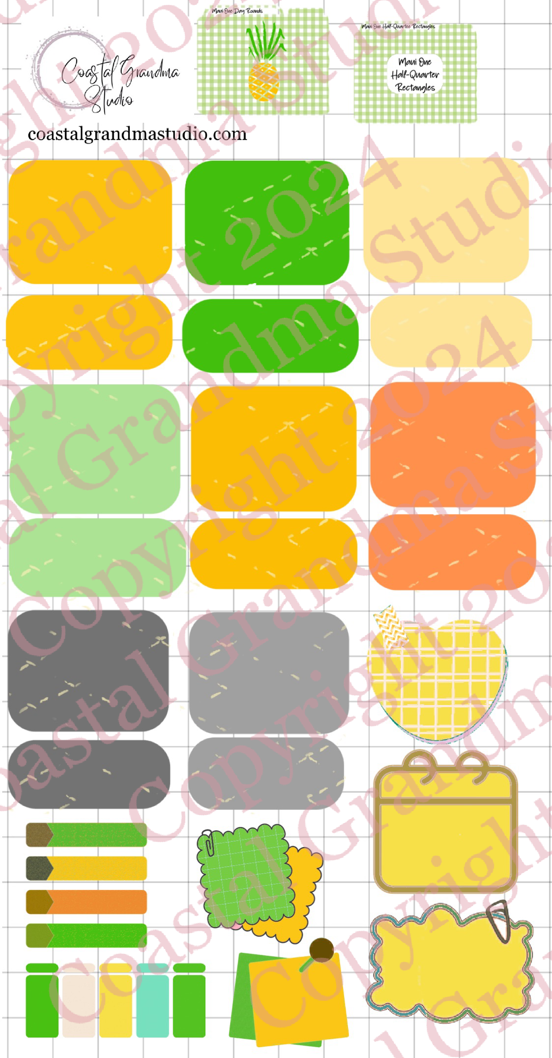 For Maui With Love One! Half/Quarter Rectangles Digital Pre-Cropped Stickers For Goodnotes (5300-HQ)