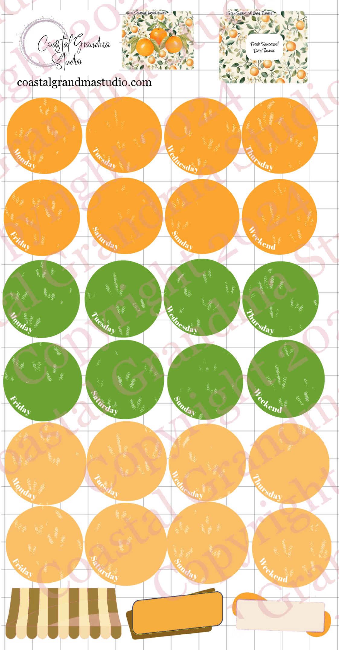 Fresh Squeezed! Day Rounds Digital Pre-Cropped Stickers For Goodnotes (7500-DR)
