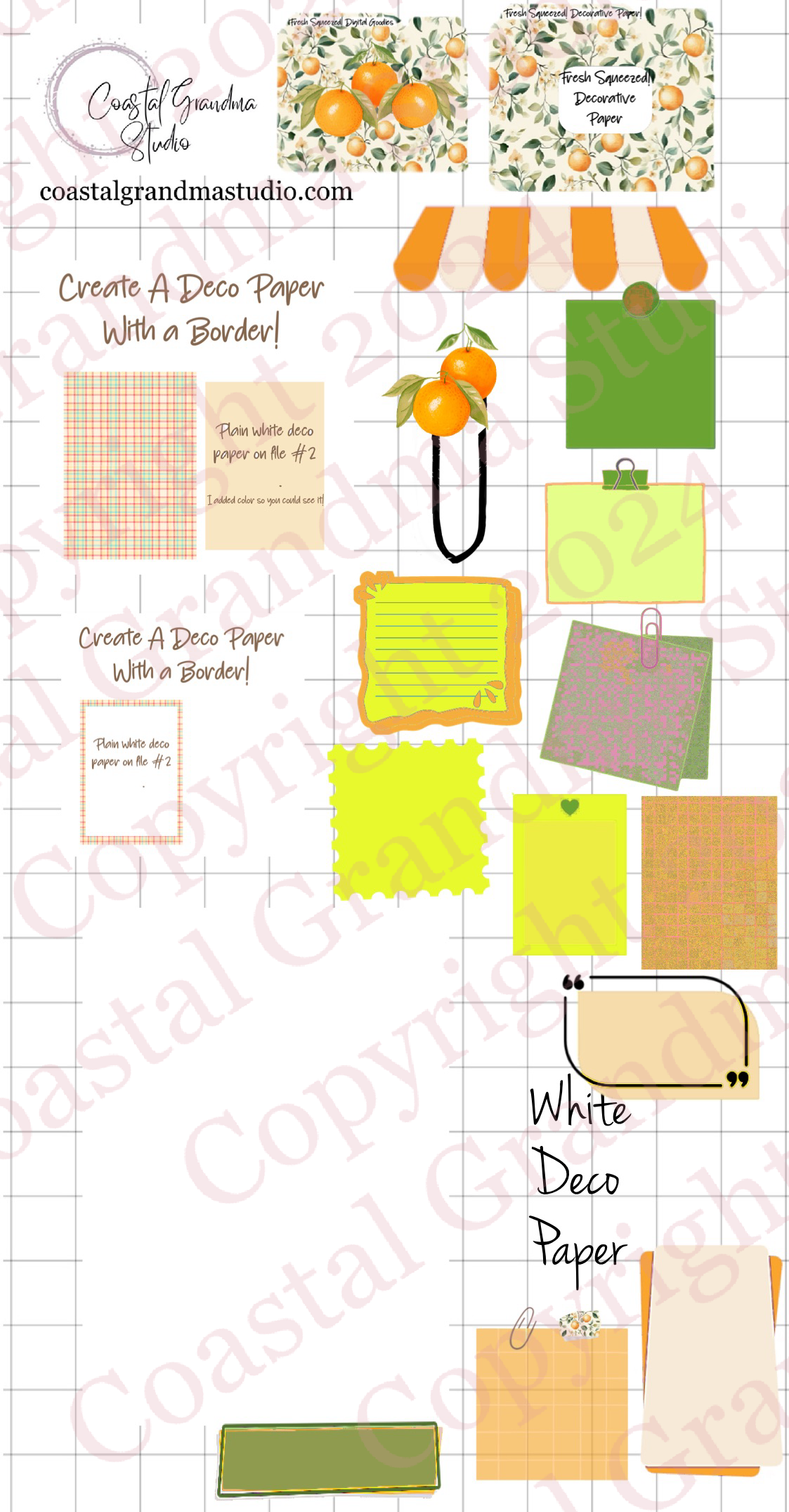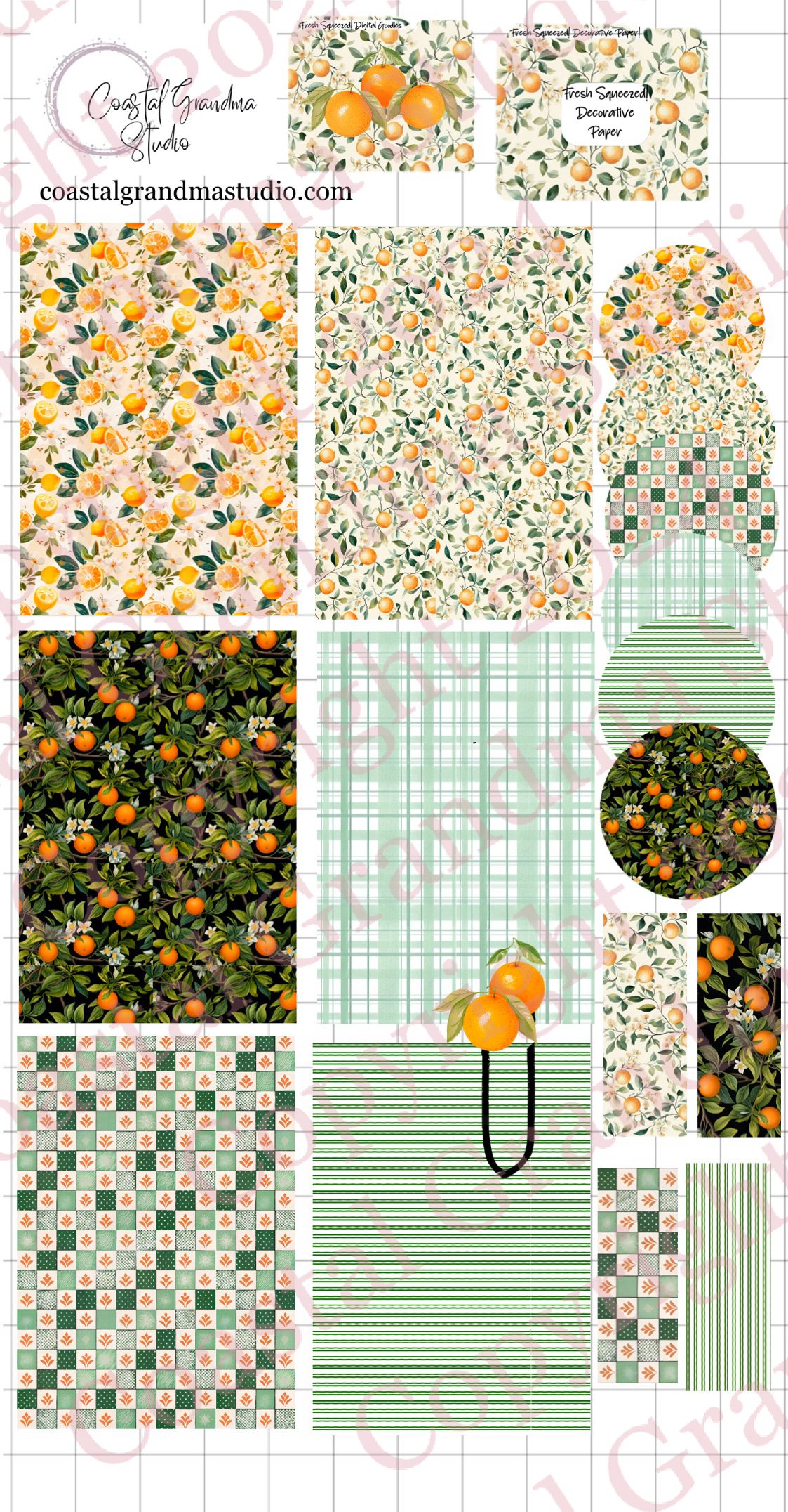 Fresh Squeezed! Decorative Papers & Goodies Digital Pre-Cropped Stickers For Goodnotes (7500-PG)