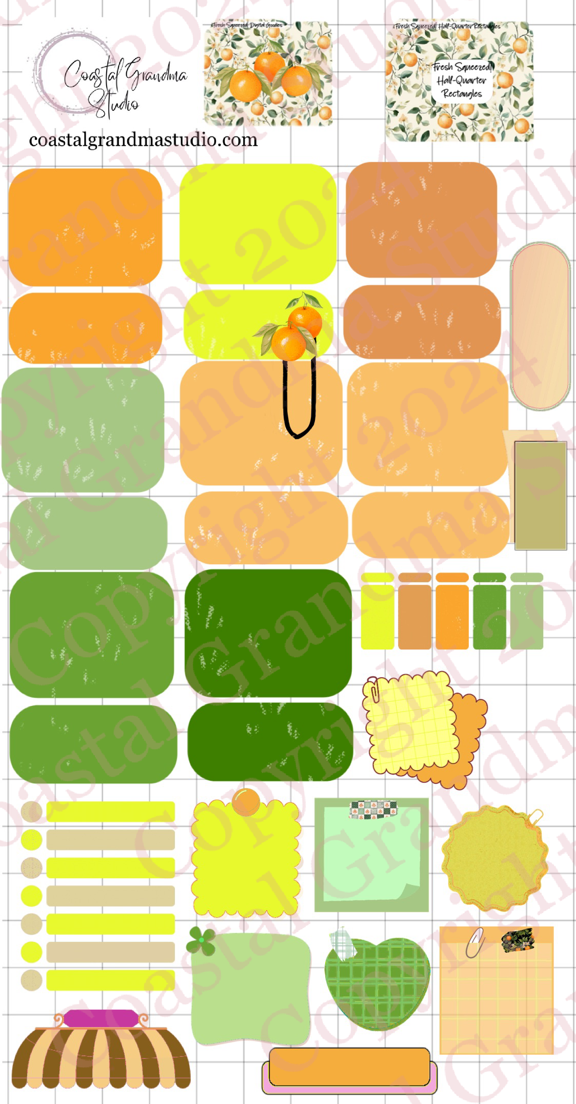 Fresh Squeezed! Half/Quarter Rectangles Digital Pre-Cropped Stickers For Goodnotes (7500-HQ)