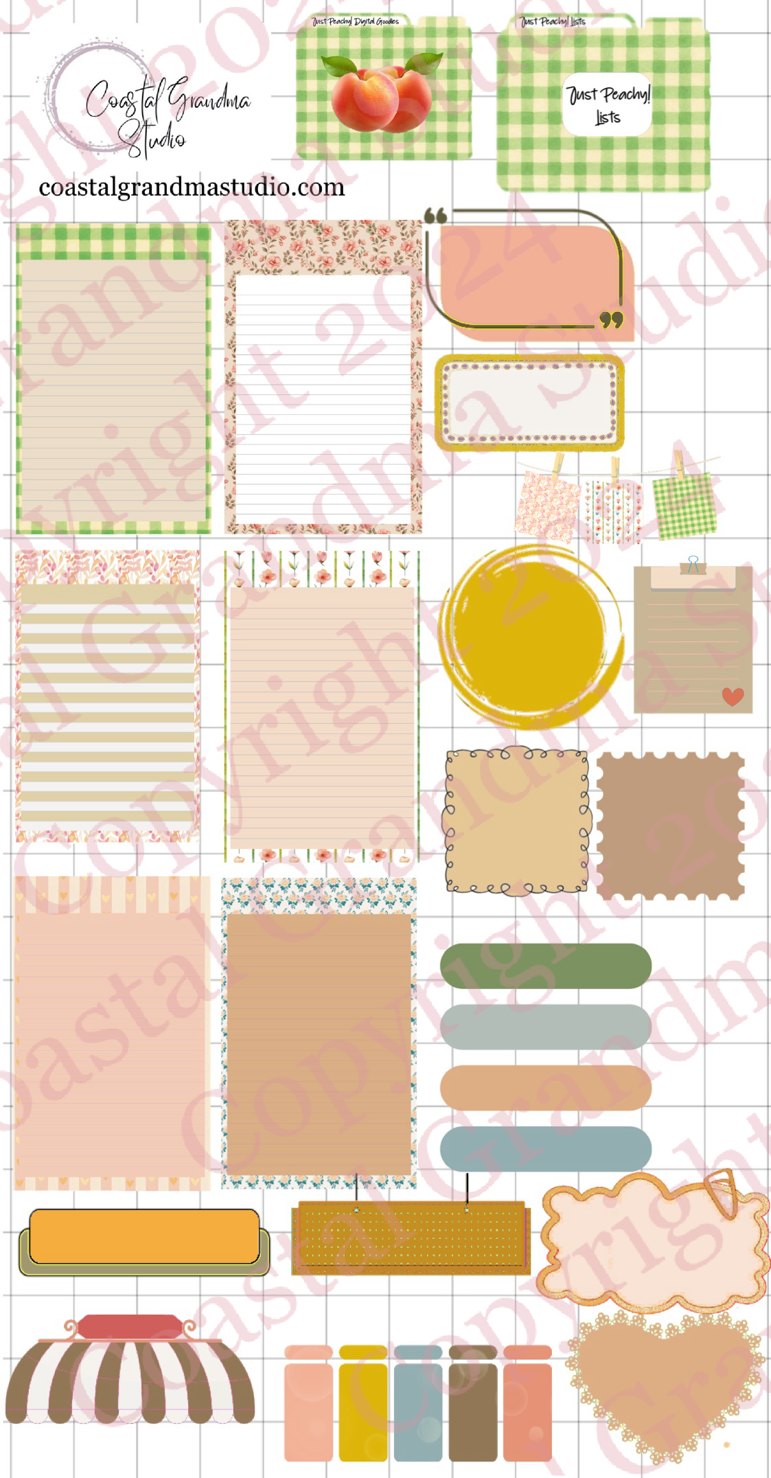 Just Peachy! Lists & Stuff Digital Pre-Cropped Stickers For Goodnotes (7600-LS)