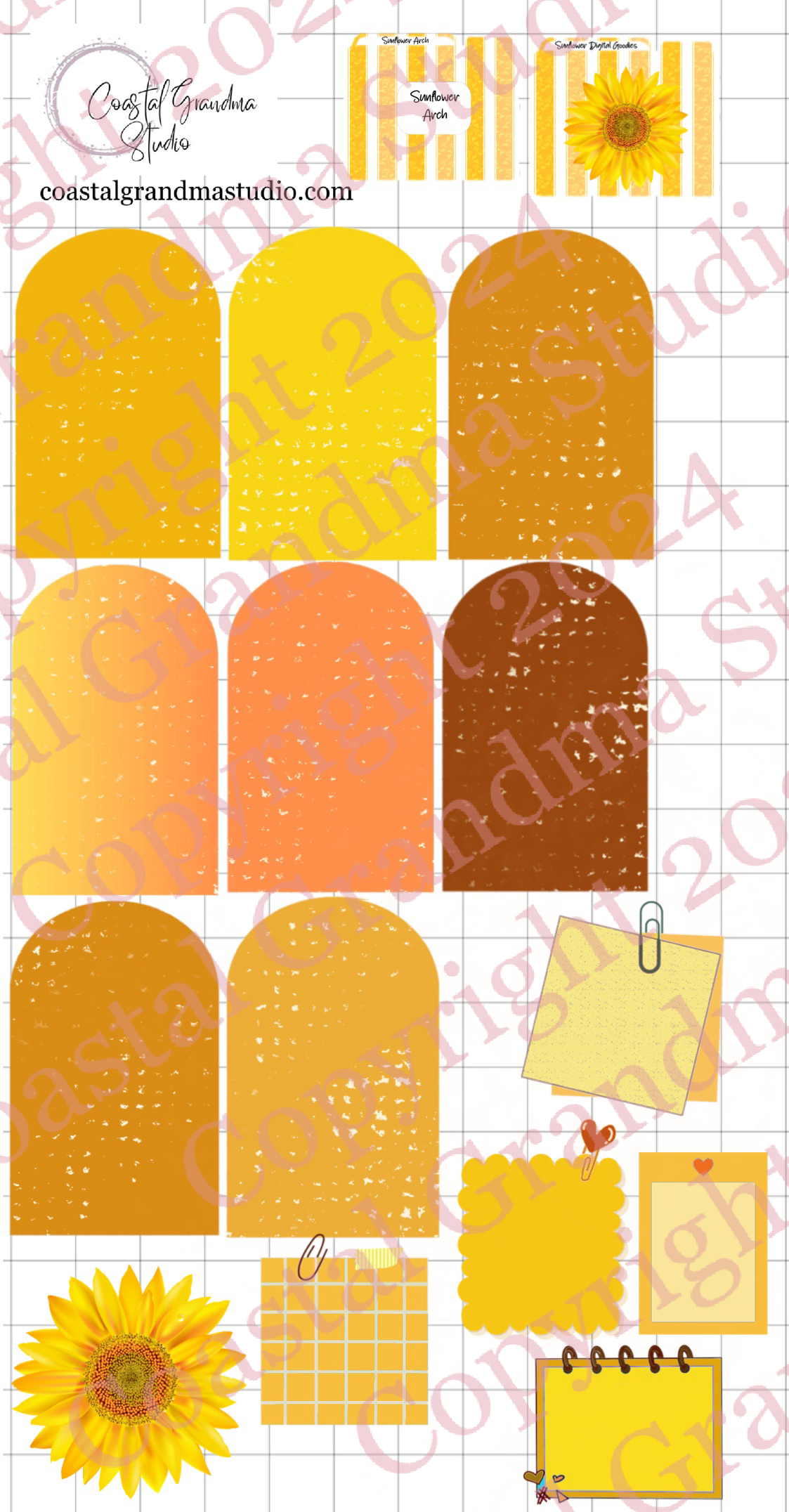 Sunflower! Arches Download Pre-Cropped Stickers For Goodnotes (4200-A)