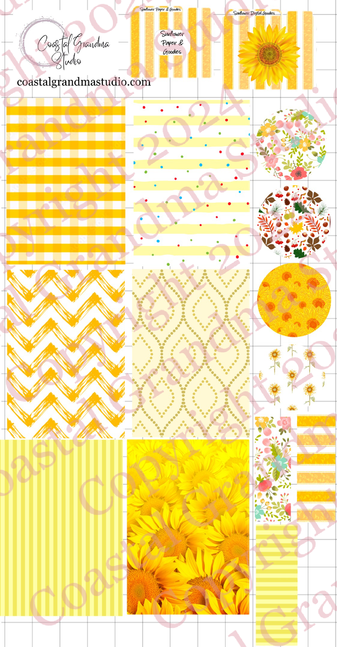 Sunflower! Decorative Papers & Goodies Download Pre-Cropped Stickers For Goodnotes (4200-PG)