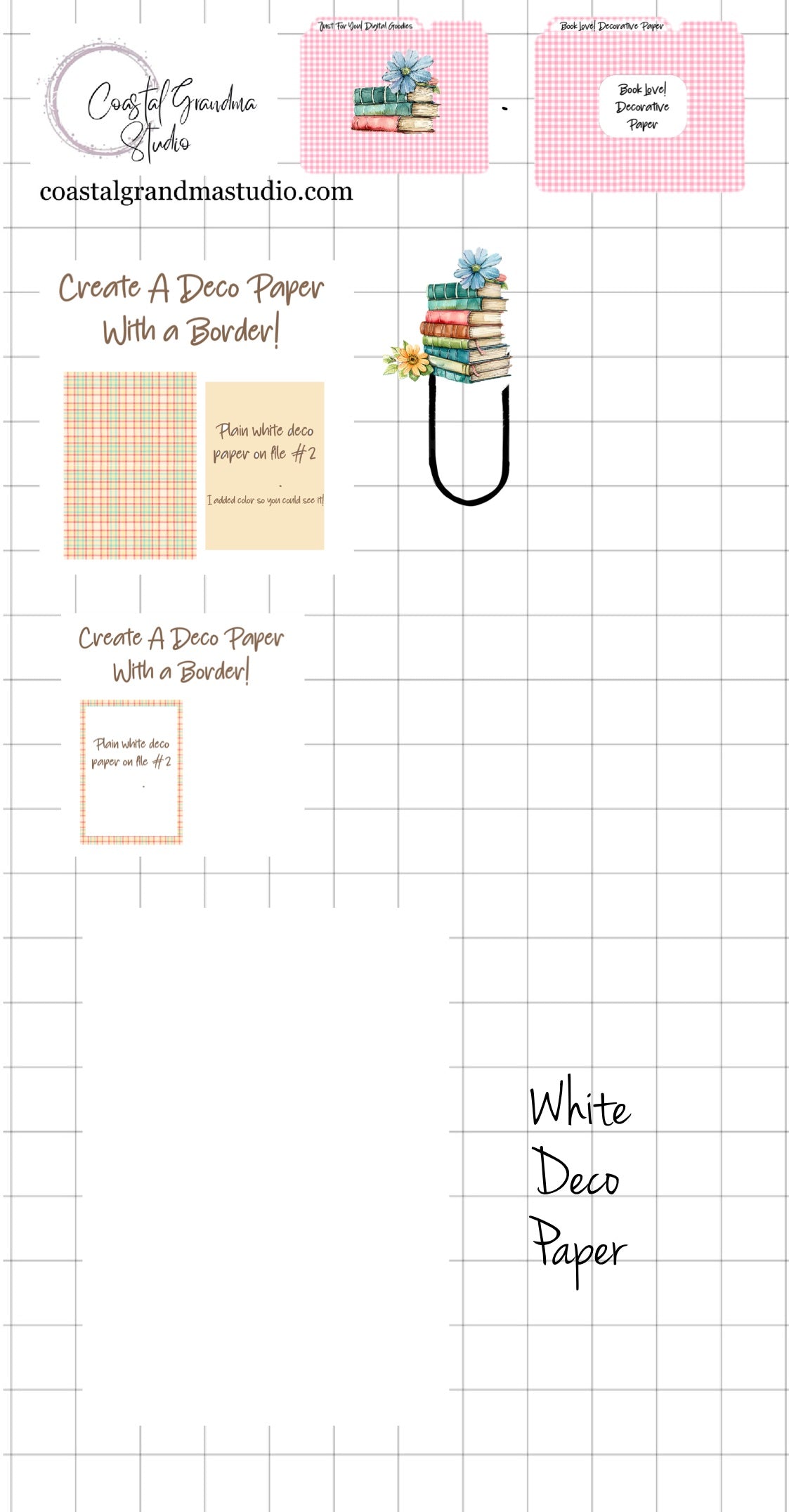 This file includes six pre-cropped decorative papers, six decorative circles and four washi tape stickers. You'll find a BONUS file that includes a white blank sheet that you can use to make bordered pages from the deco pages. I've also added two pre-cropped file folders to help keep you organized!
