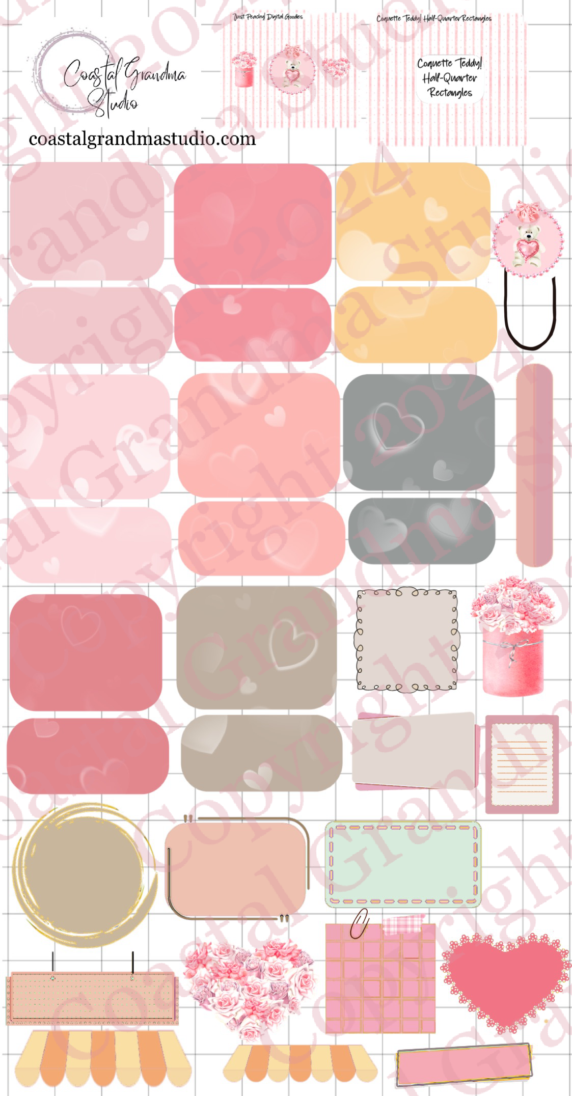 Coquette Teddy Love! Half/Quarter Rectangles Digital Pre-Cropped Stickers For Goodnotes (7700-HQ) (Copy)