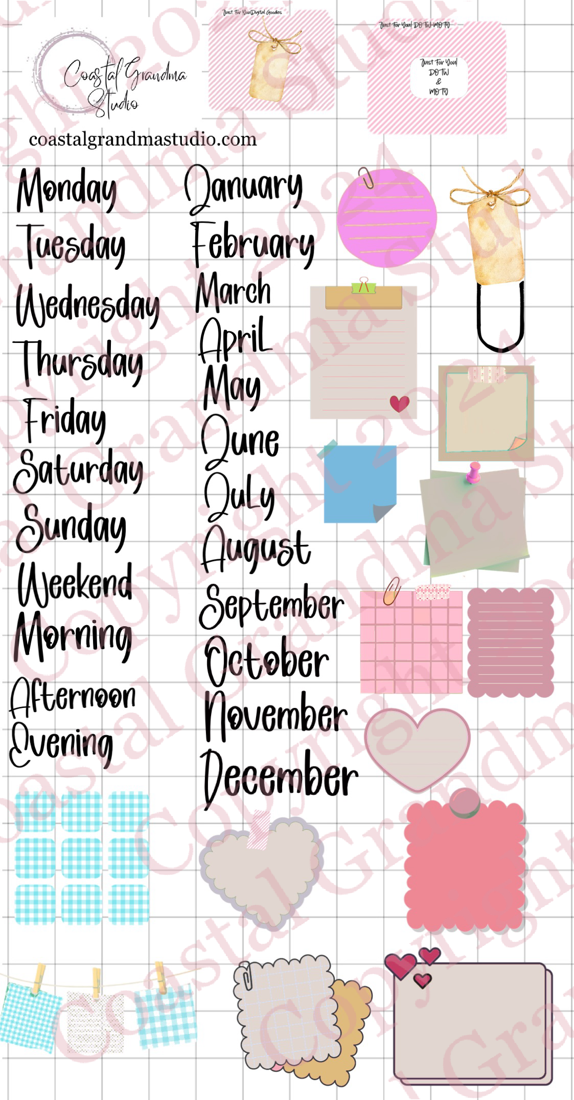 Just For You! Days Of The Week/Months Of The Year Digital Pre-Cropped Stickers For Goodnotes (5700-DM)