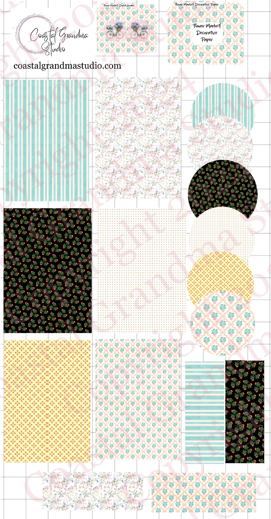 Flower Market! Decorative Papers & Goodies Digital Pre-Cropped Stickers For Goodnotes (7200-PG)