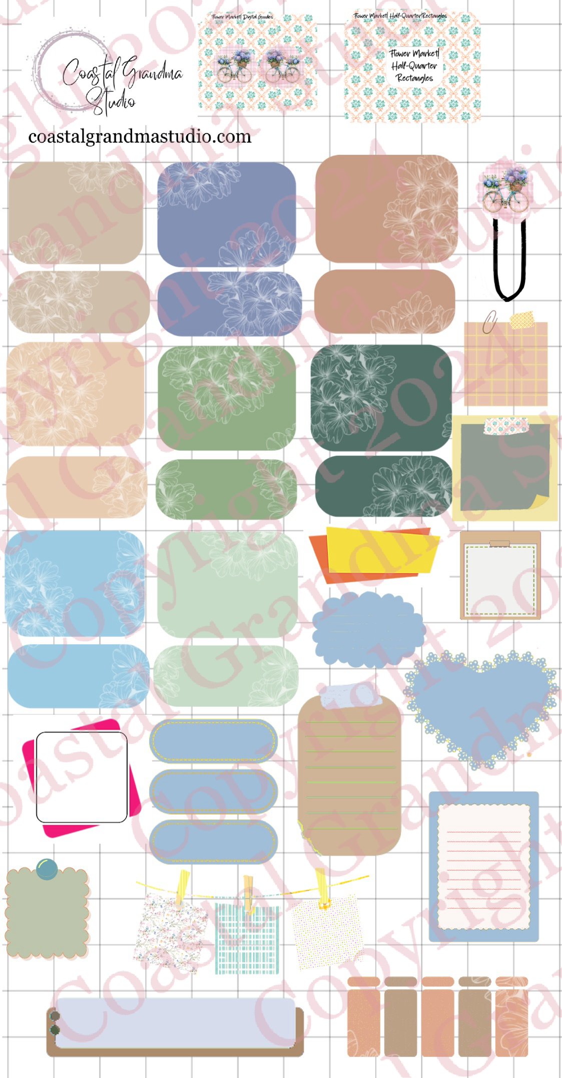 Flower Market! Half/Quarter Rectangles Digital Pre-Cropped Stickers For Goodnotes (7200-HQ)