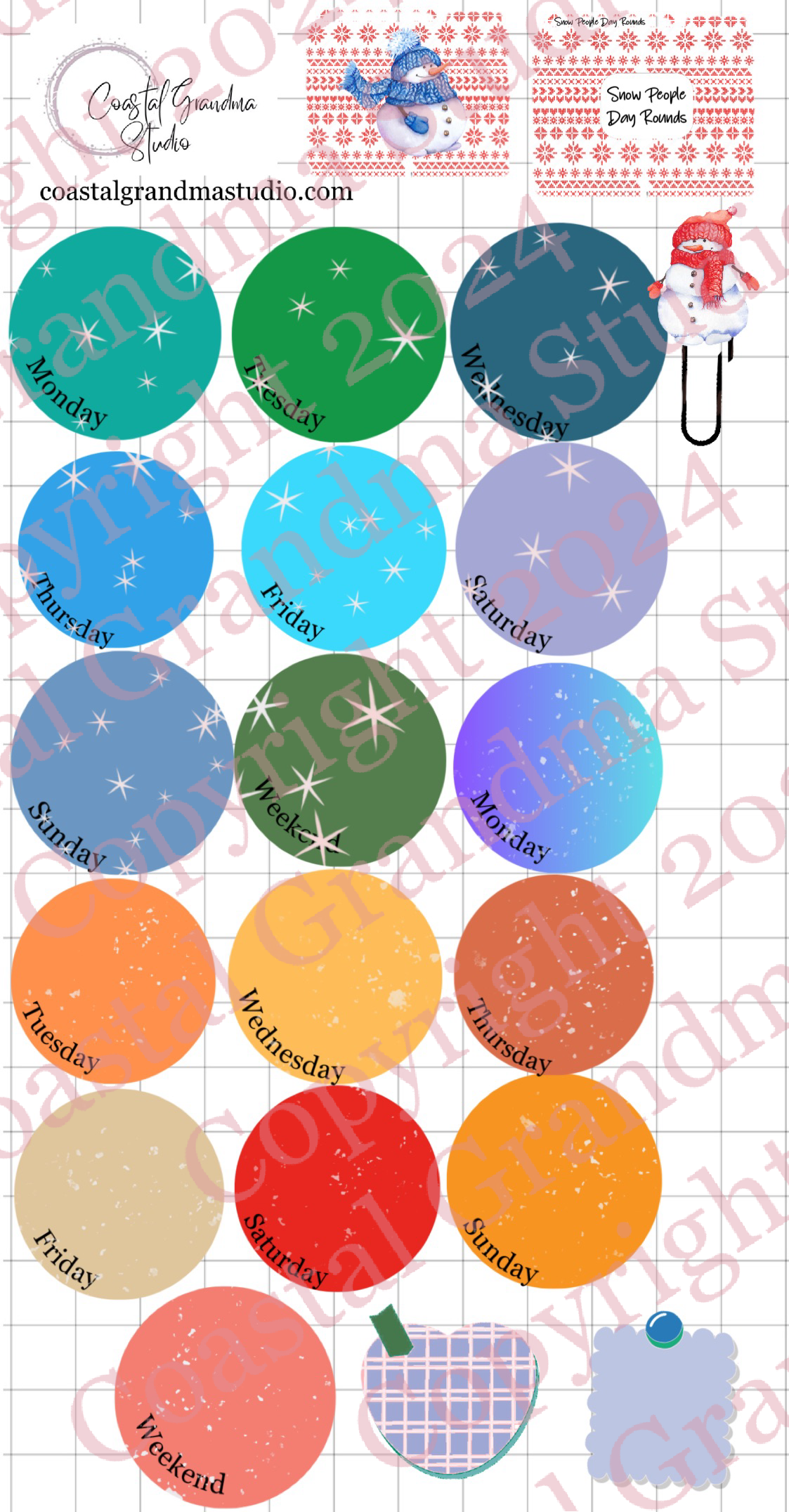 Snow People! Day Rounds Digital Pre-Cropped Stickers For Goodnotes (4800-DR)