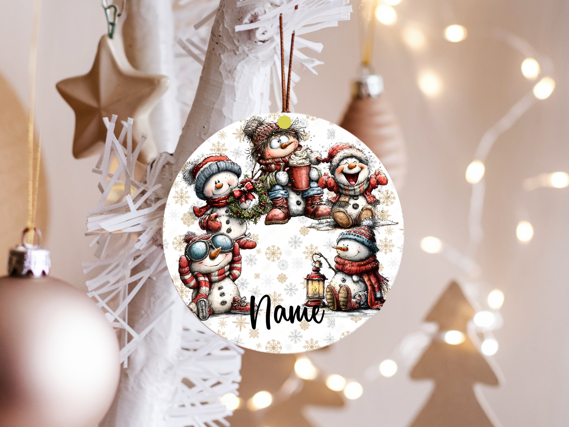 Bring a touch of whimsical charm and quirky winter magic to your holiday décor with this adorable Personalized Snowman Ornament. Featuring a cheerful group of expressive snowmen dressed in soft winter hues, this ornament captures all the joy, silliness, and storybook personality of the season.