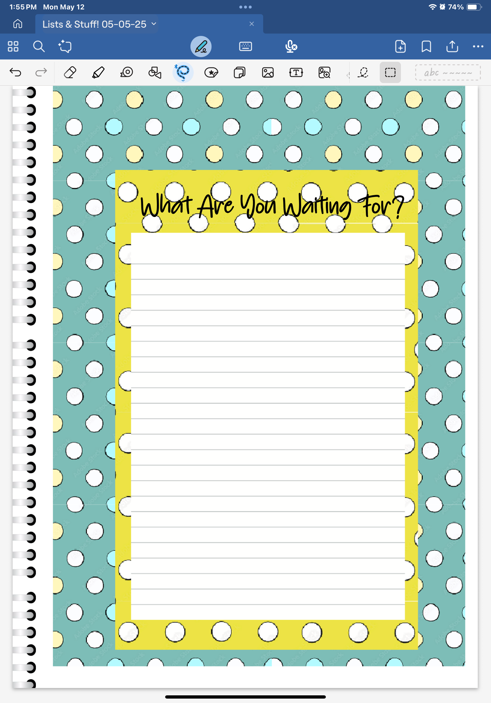 This file includes six pre-cropped lists that you can use in a variety of ways. (I added the days using the Days of the Week Stickers. I added my own labels using the Text Box in the toolbar.) Maybe you're like me, and some days you don't feel like creating a new page so a list comes to the rescue. It's quick and easy to jot things down and check them off as you complete each one. I keep a separate notebook in Goodnotes titled Quick Lists for jotting down thoughts that come to mind! Trust me...if I don't write it down immediately...it flies out of my brain as fast as it flew in! And, as always, I've also added two file folders to help you stay a wee bit organized. You'll also find a handful of fun decorative stickers.