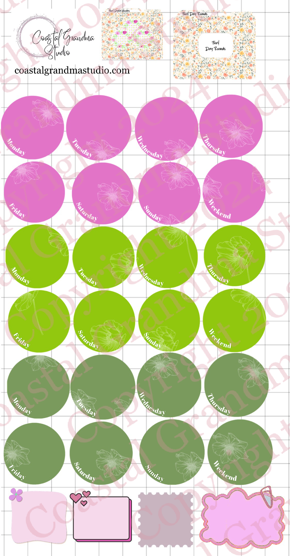 Fiori!! Day Rounds Digital Pre-Cropped Stickers For Goodnotes (7400-DR)
