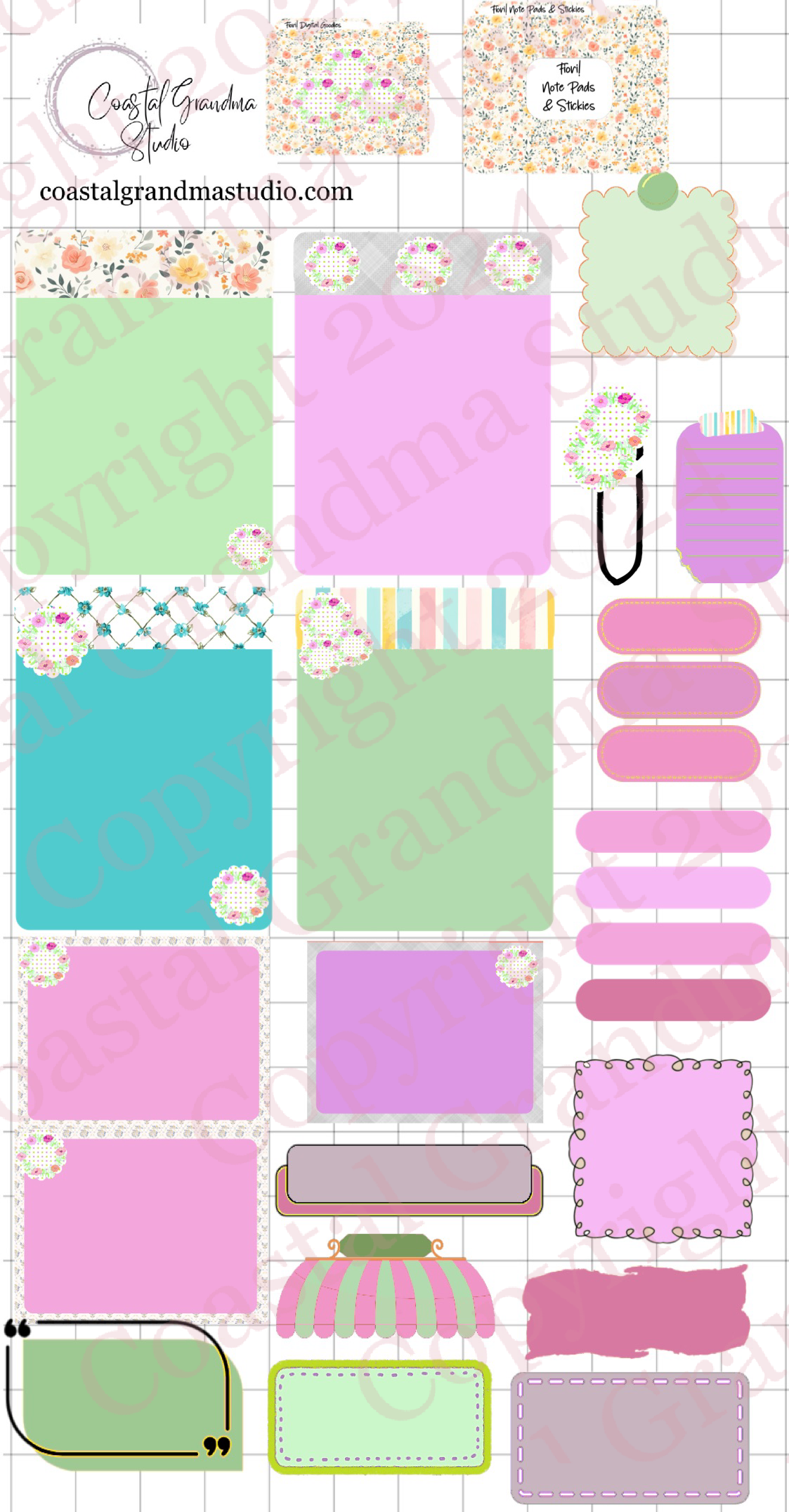 Fiori! Note Pads & Stickers Digital Pre-Cropped Stickers For Goodnotes (7400-NP)