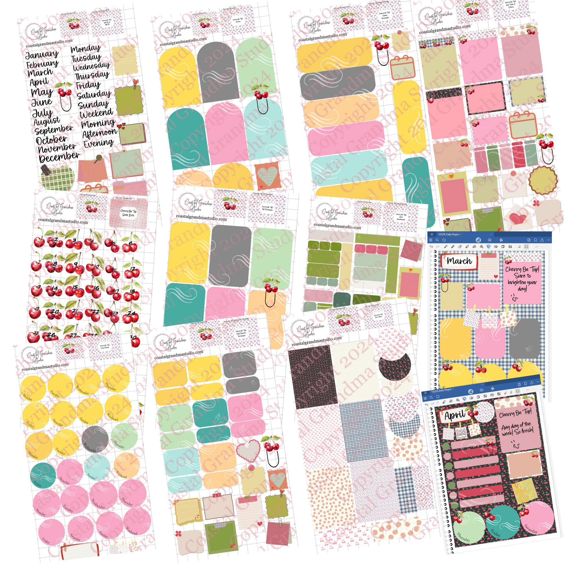 DETAILS: This BUNDLE includes all 12 of the Cherry On Top! individual sheets of pre-cropped stickers. Specifically designed for use with the PDF annotation app GoodNotes. (Goodnotes is my APP of choice when it comes to all things digital planning and journaling.) When you buy the BUNDLE you save over what you would pay buying each one individually. And…unlike paper planners…these digital stickers never go out of date!