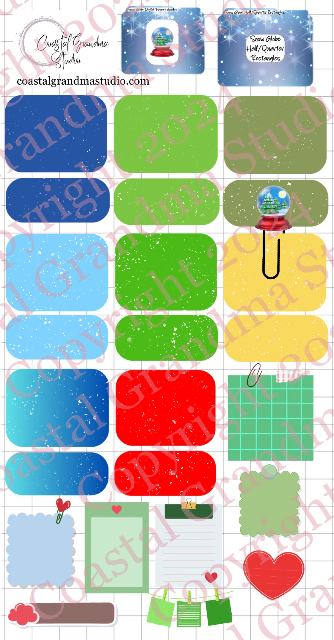 Snow Globe Magic! Half/Quarter Rectangles Digital Pre-Cropped Stickers For Goodnotes (5400-HQ)