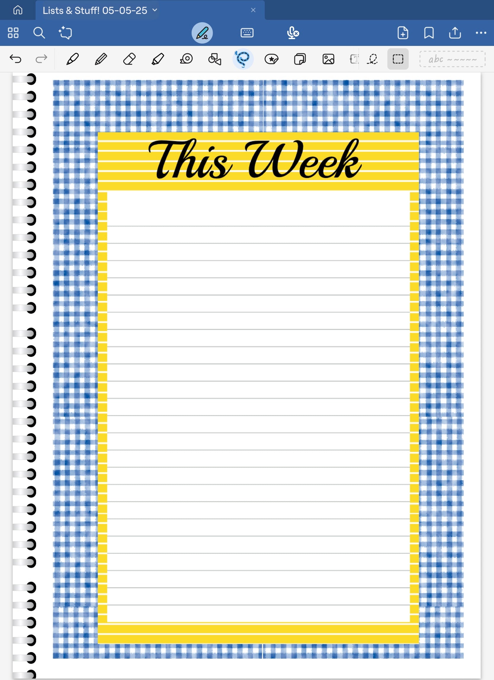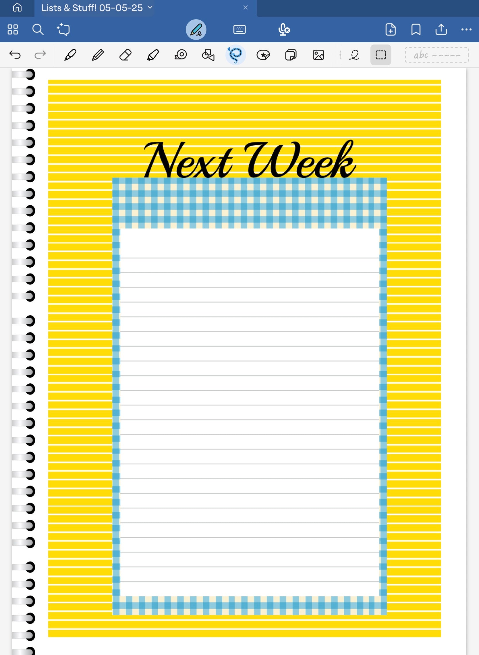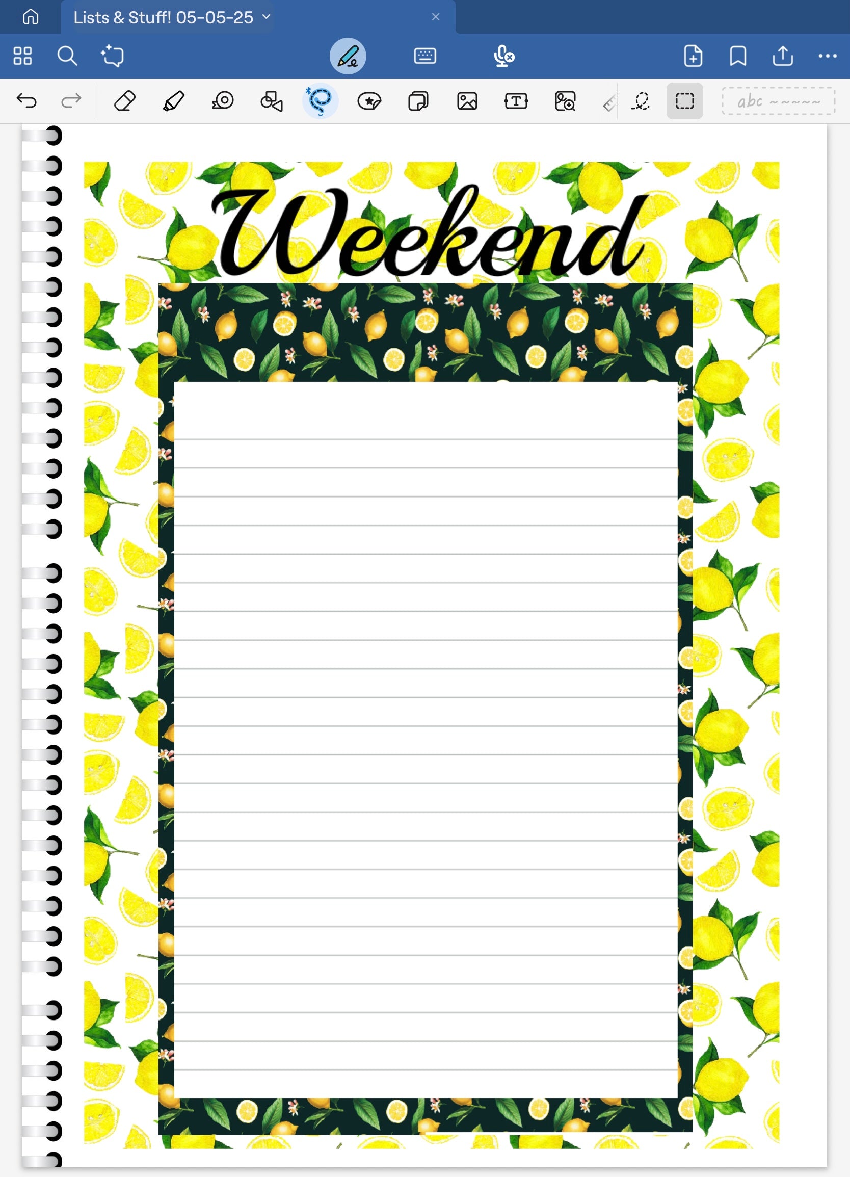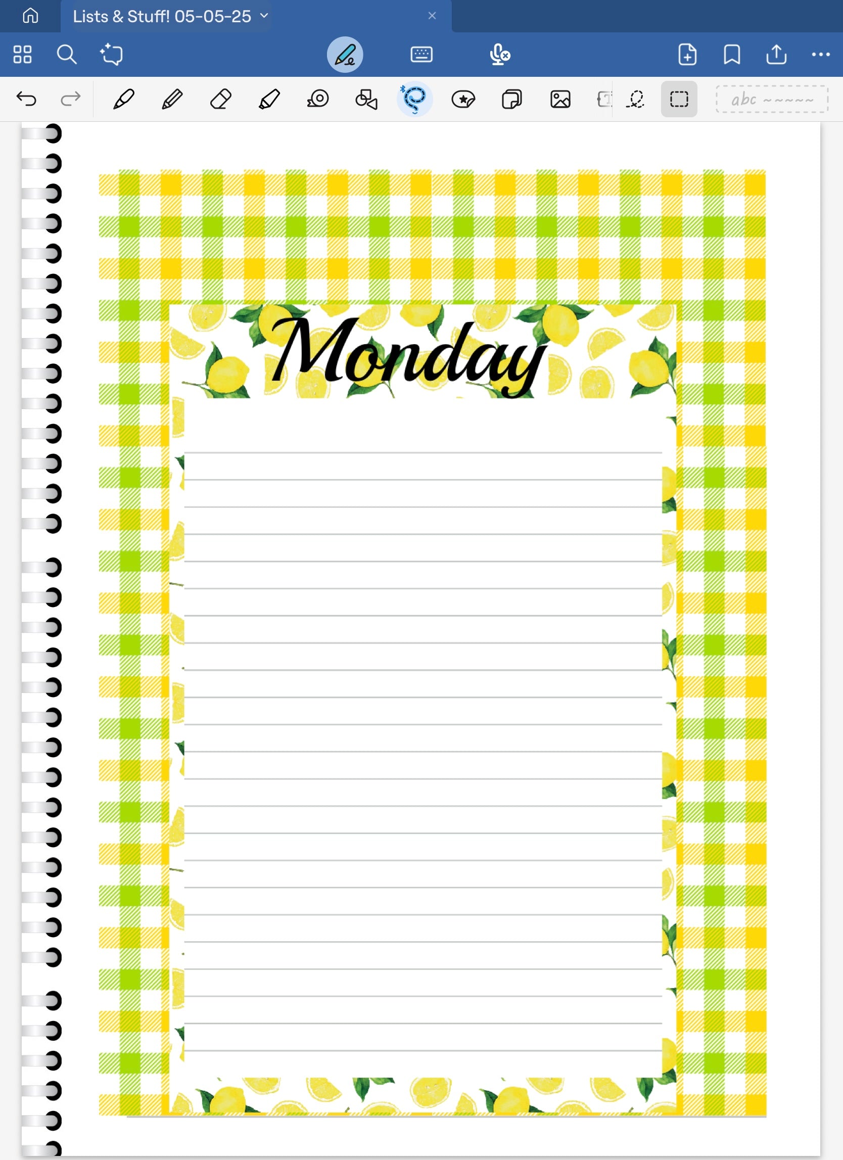 This file includes six pre-cropped lists that you can use in a variety of ways. (I added the days using the Days of the Week Stickers.) Maybe you're like me, and some days you don't feel like creating a new page so a list comes to the rescue. It's quick and easy to jot things down and check them off as you complete each one. I keep a separate notebook in Goodnotes titled Quick Lists for jotting down thoughts that come to mind! Trust me...if I don't write it down immediately...it flies out of my brain as fast as it flew in! And, as always, I've also added two file folders to help you stay a wee bit organized. You'll also find a handful of fun decorative stickers.