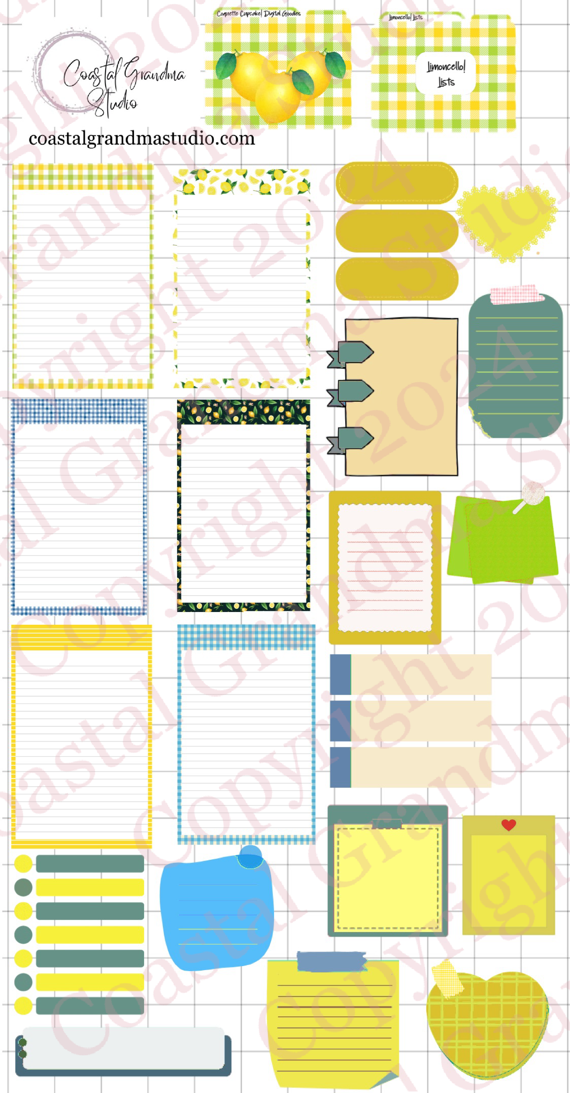 Limoncello! Lists & Stuff Digital Pre-Cropped Stickers For Goodnotes (7100-LS)
